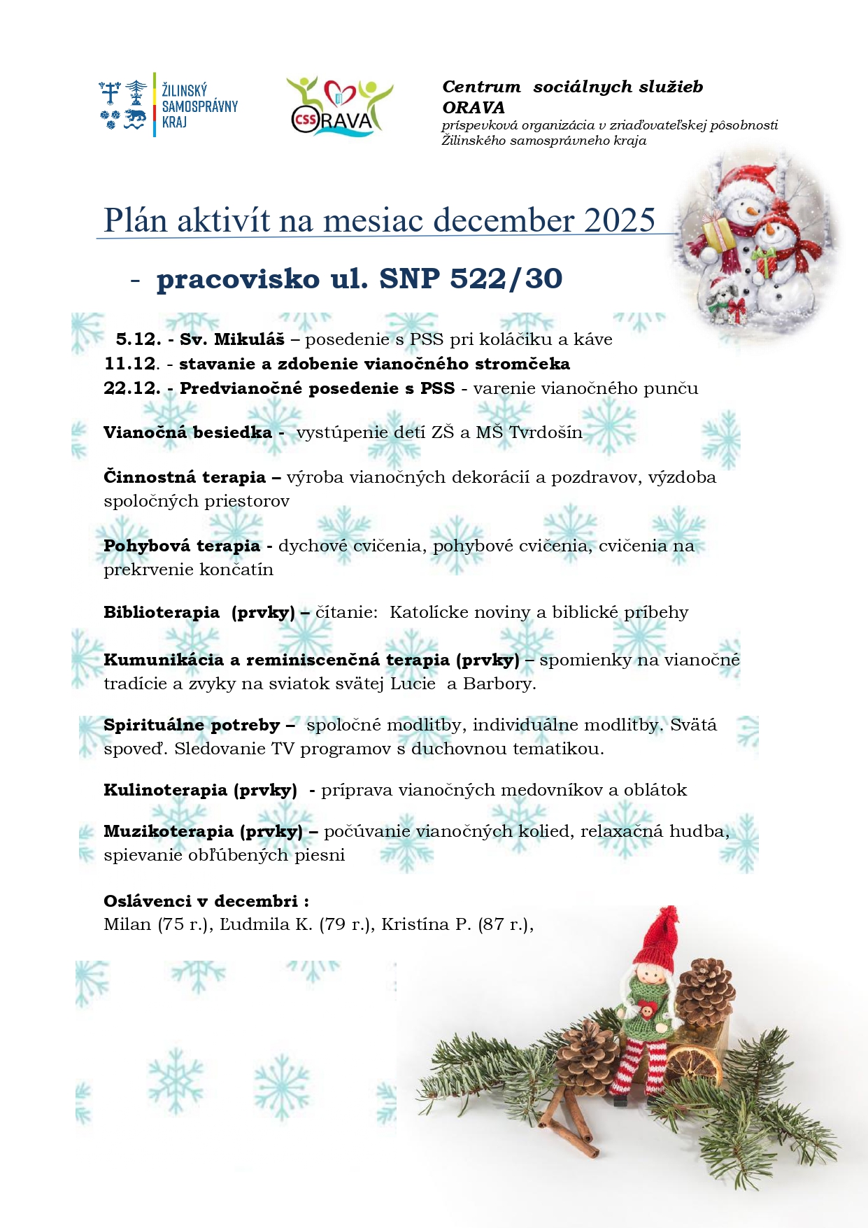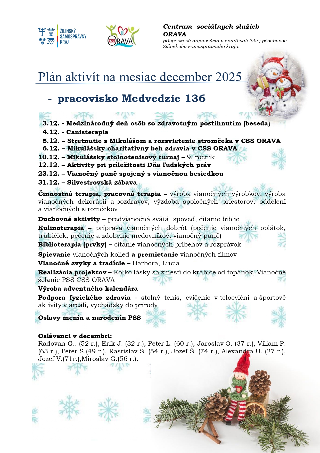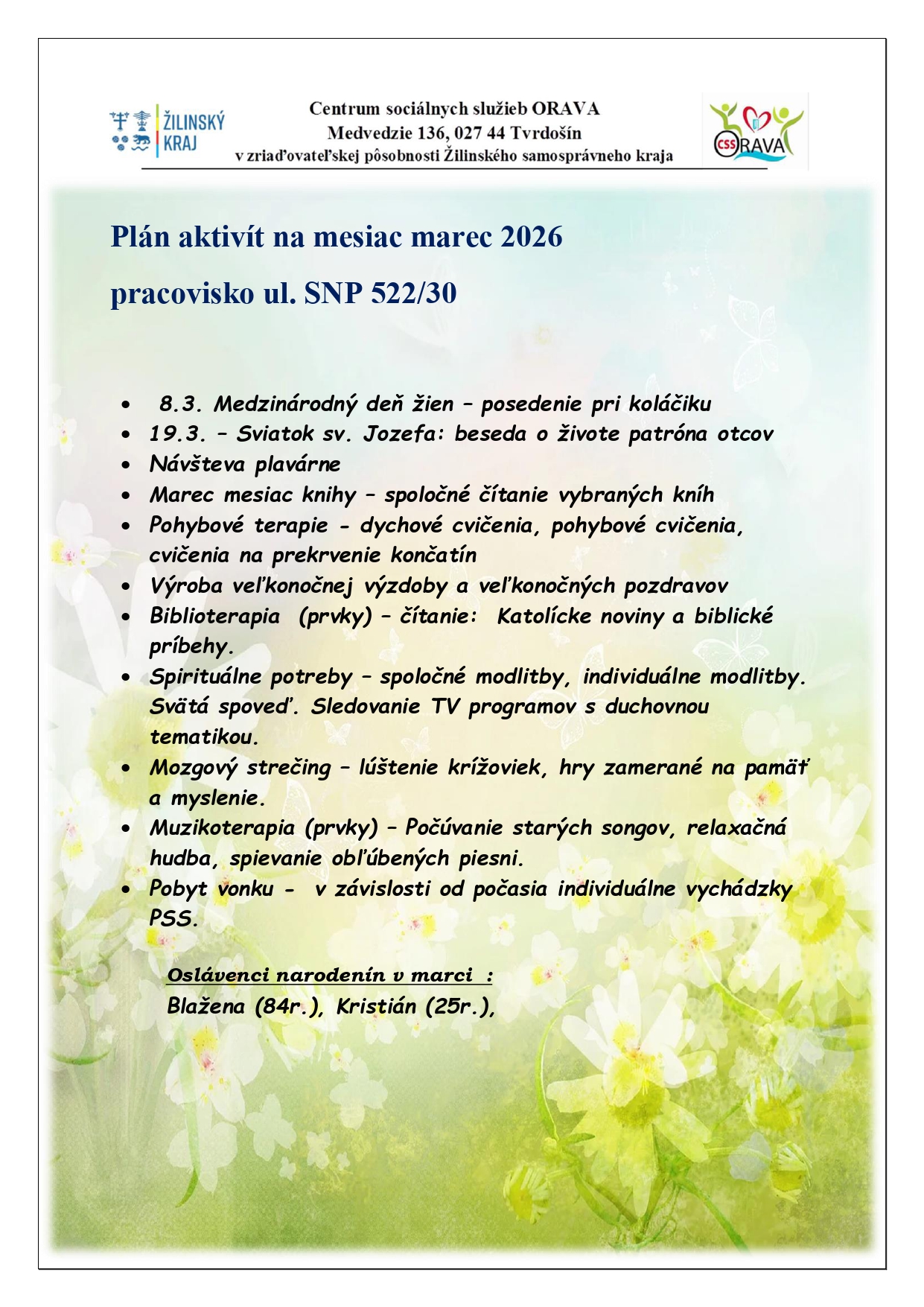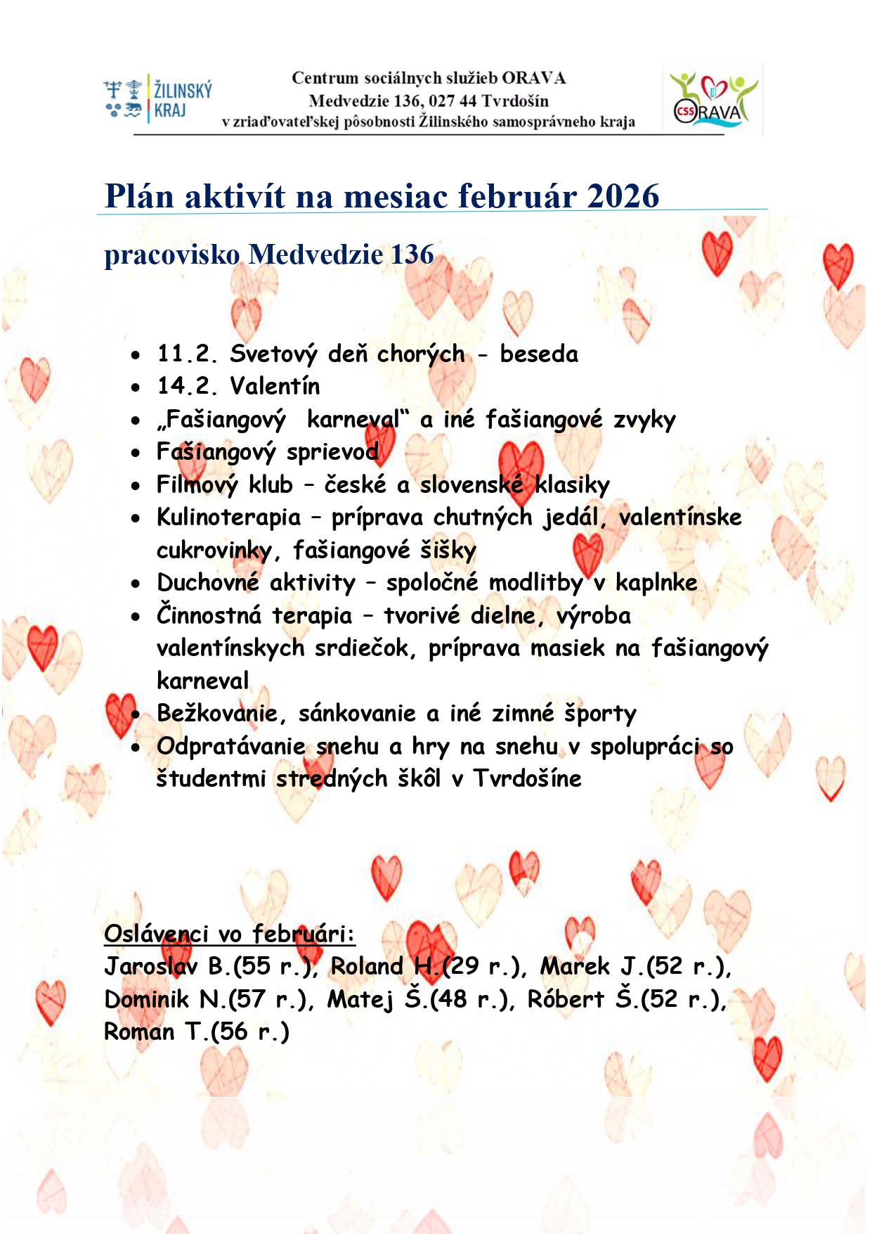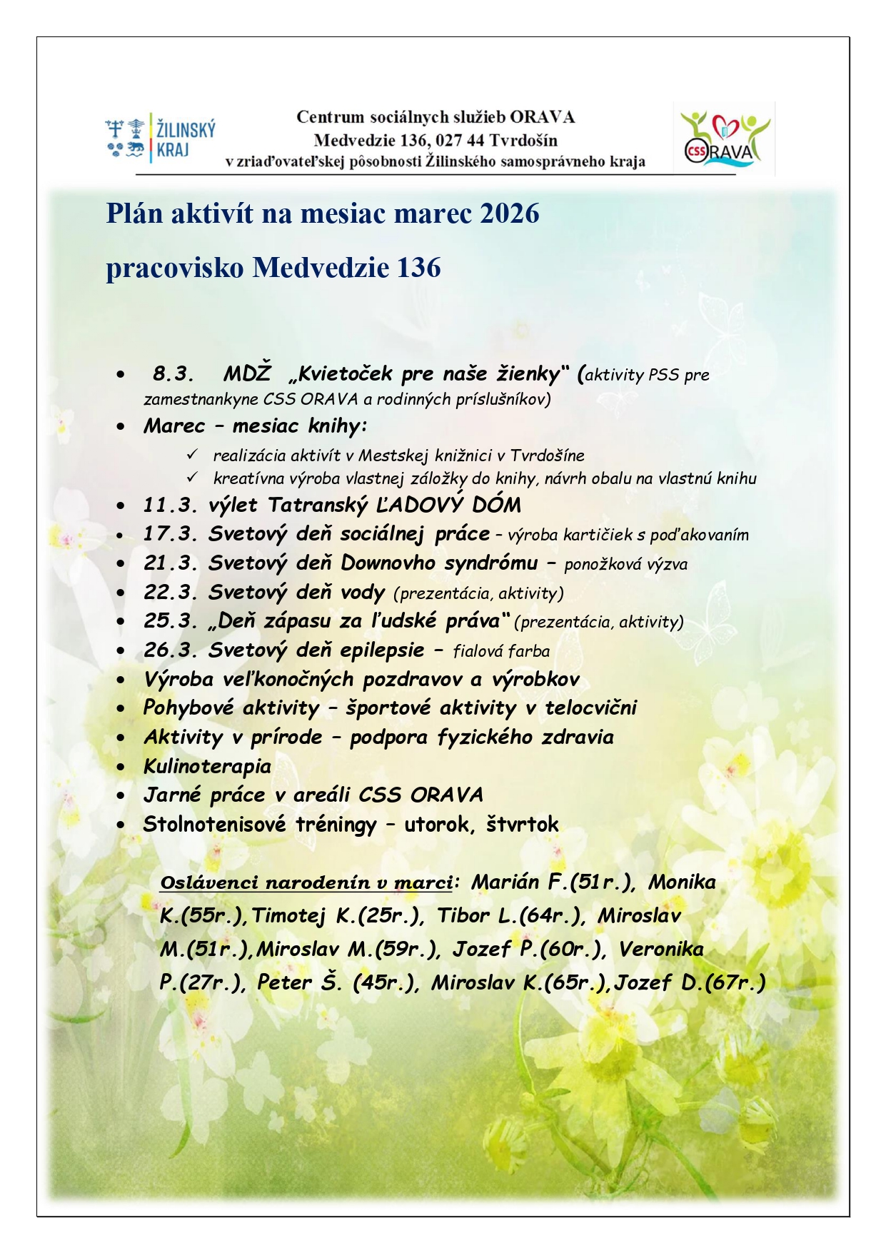 Plán aktivít na mesiac